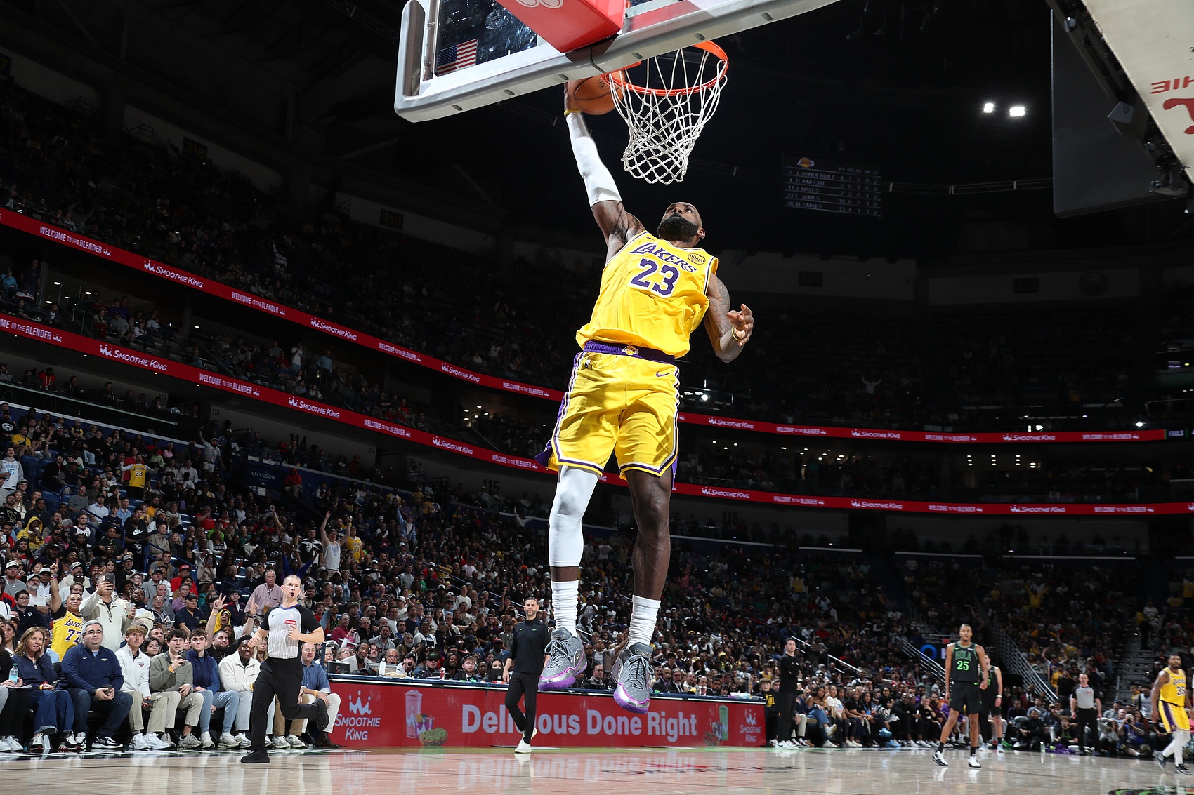 首节比赛,湖人球星詹姆斯表现不错,串联做得很好并且没有失误,在9分钟的时间里,投篮6中3,三分球1中0,拿到6分2篮板6助攻1盖帽的数据,正负值+10。